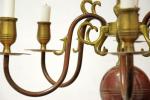 Antique bronze and copper candle chandelier with twelve arms and very convenient wax dishes/catchers
