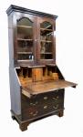 Beautiful George III antique secretary bookcase with glazed double door secretary over a slant front desk