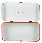 Bread bin red and grey enamel e. ok 2