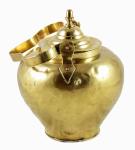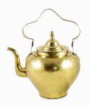 Pear-shaped antique Dutch brass water kettle with hinged handle