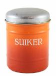 Vintage Dutch canister "Suiker" (Sugar) in smoky orange enameled steel
