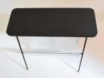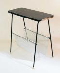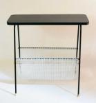 Vintage magazine rack with black top and metal magazine holder