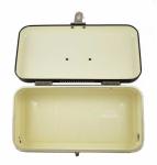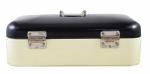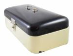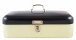 An original vintage Dutch bread bin in black and cream enameled steel