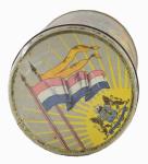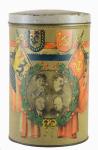 Tin with images of Roosevelt, Stalin, Churchill and Kai-shek.