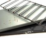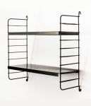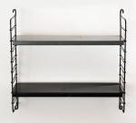 Vintage mid-century design metal book rack with two black and grey bookshelves